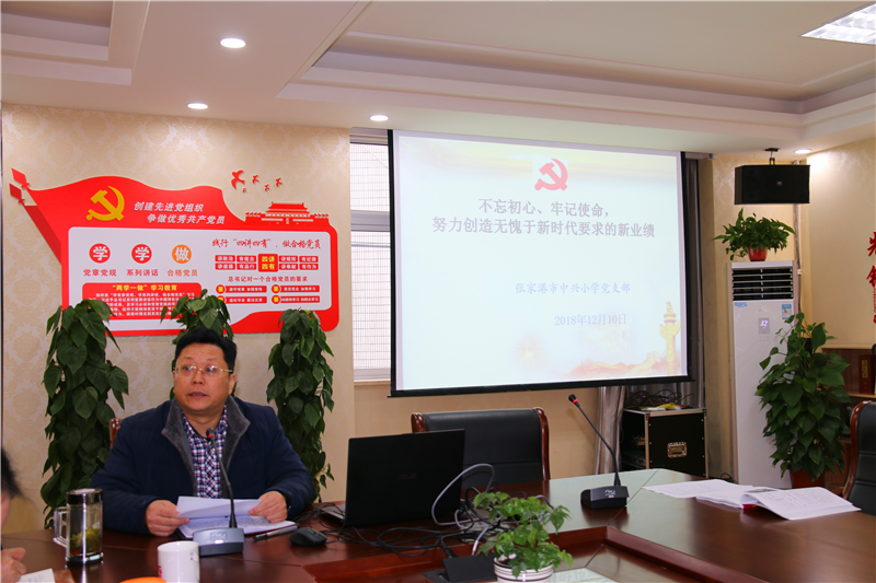 第一个议程:支部书记严卫星带领全体党员教师学习来源于“人民网”的一篇文章《不忘初心、牢记使命,努力创造无愧于新时代要求的新业绩》,进一步宣讲党的十九大精神,并在讲话中指出,全体党员要进一步树立“五过硬”意识,梳理自身问题,严格按照师德规范要求管理自己,远离“红线”“底线”,牢记使命,希望大家以校为家,以生为本,坚持以学生核心素养的发展为方向,提升自己的专业素养,模范履行教育教学职责,为学校的教育教学质量的提升做出新贡献,为中兴小学的江畔娃们得到优质教学不懈努力。
