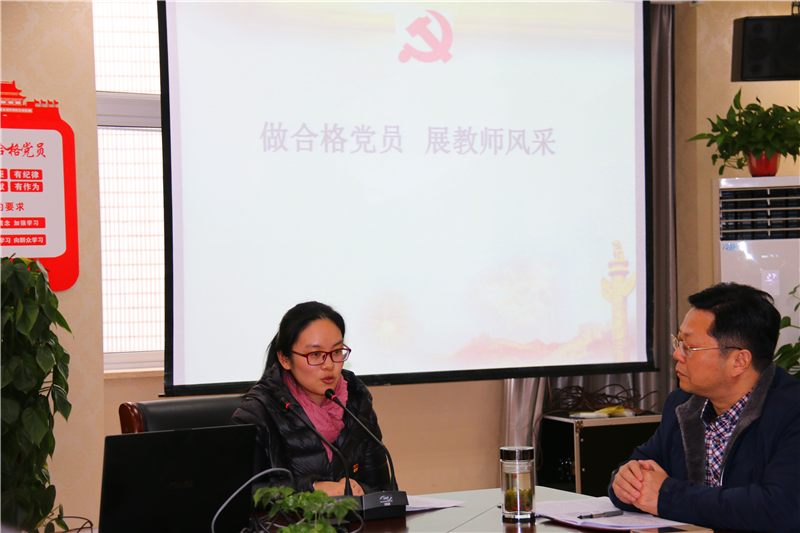 第二个议程:举行“做合格党员,展教师风采”主题演讲活动,陈维、陈清两位老师用自己亲身的经历讲述自己在教育教学工作中践行党章要求,“学高为师,身正为范”,清正廉洁,弘扬正气,努力做教书育人的楷模,努力做最美的教坛先锋。两位老师情真意切的演讲,增强了我校支部全体党员自觉提升自身素质的责任感和使命感,为建设师德高尚、业务精湛、充满活力的高素质党员教师队伍,树立了良好的榜样。