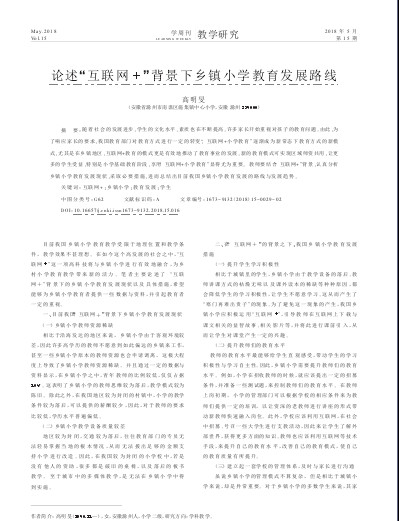 论述“互联网+”背景下乡镇小学教育发展路线
