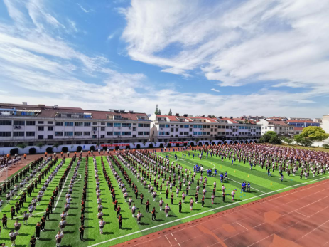 上午九点,伴随着欢快而富有节奏的音乐,全体师生迈着矫健的步伐,排着整齐的列队跑步进场,到达指定场地后,依次进行了足球操、分班足球游戏和放松操等体育活动,同学们在丰富多彩的大课间活动中展示出朝气蓬勃、健康向上的精神风貌,老师们也积极主动加入到大课间活动中,全面参与、强身健体。